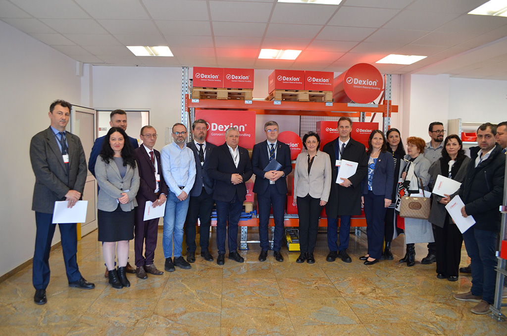 On Friday, 3 April 2026, Dexion Storage Solutions, part of the international Gonvarri Material Handling Group, had the honor of welcoming an official delegation to its facility in Râșnov. The delegation included the Minister of Economy, Digitalization, Entrepreneurship and Tourism, Mr. Ambrozie‑Irineu Darău, the Mayor of Râșnov, Mr. Horia Motrescu, together with the Deputy Mayor and local councilors of the Râșnov Municipality.